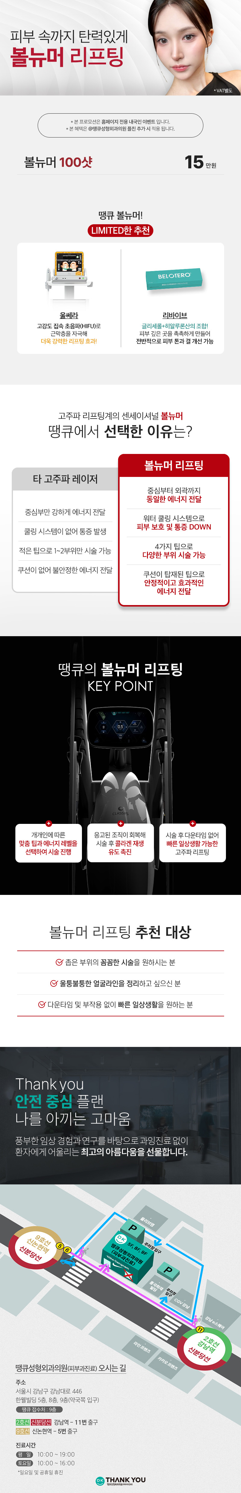 피부 고민에 대한 진정성 있는 솔루션 땡큐피부과땡큐성형외과의원대표 : 김형석사업자등록번호: 195-49-00743